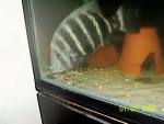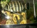 ![]() Энэ циклид нь Африк тив-ээс гаралтай маш том биетэй (40см) болдог гоёмсог циклидүүдийн нэг юм. Харагдах байдал нь шар эсвэл цагаан болон хар хөндлөн зураастай, цайвар зураасын хувьд загасны тухайн үеийн байдлаас шалтгаалан хувирах боломжтой ба цайвар зураас нь хөгшрөх тусмаа бүдгэрэх хандлагатай байна. Зебра циклид нь маш ухаантай бөгөөд догшин ширүүн ааштай загас юм. Аквариумын гадна талд болж буй үйл явдалд хүртэл хариу үйлдэл үзүүлдэг бөгөөд уур нь хүрсэн тохиолдолд шилний цаанаас дайрах, том хайрга чулуу авж шидлэх гэх мэт үйлдлүүд гаргадаг. Маш хурц ширүүн хөдөлгөөн хийж чаддаг ба энэ нь зодолдох үед илт мэдэгддэг. Өөрөөсөө том загасыг зодох бол энүүхэнд. Өөр төрлийн байтугай өөрийн төрлийн загастай зохицож амьдрах нь ховор бөгөөд маш түрэмгий хурц ааштай тул ямар ч загас хийсэн заавал зодоон хийнэ. Ихэнхидээ ганцаарангаар нь тэжээдэг бөгөөд багаасаа цуг өсөж дассан загастай эвтэй амьдрах тохиолдол байдаг. Жоохон байхдаа бол ямар ч асуудалгүй эвсэг бөгөөд томрох тусмаа догшин түрэмгий болдог. Тэжээхдээ аль болох томхон аквариумд (100-аас дээш литр) тэжээх бөгөөд бусад африк циклидүүдийн адил 25-27 градус, хатуулаг нь pH 7.8-8.6 байх ёстой.Шахах үед нь л ялгах боломжтой ба бусад циклидүүдийн адилаар нуувч, эсвэл ухсан хайрга дотор шахдаг. Шахах үедээ маш аймшигтай хэрцгий ууртай догшин болдог. Одоогоор аквариумд маш цөөхөн шахсан тохиолдол байдаг. Үржүүлэхдээ аквариумын үржүүлэгийн том фарм эсвэл байгаль дээрээ л үрждэг юм байна. | |